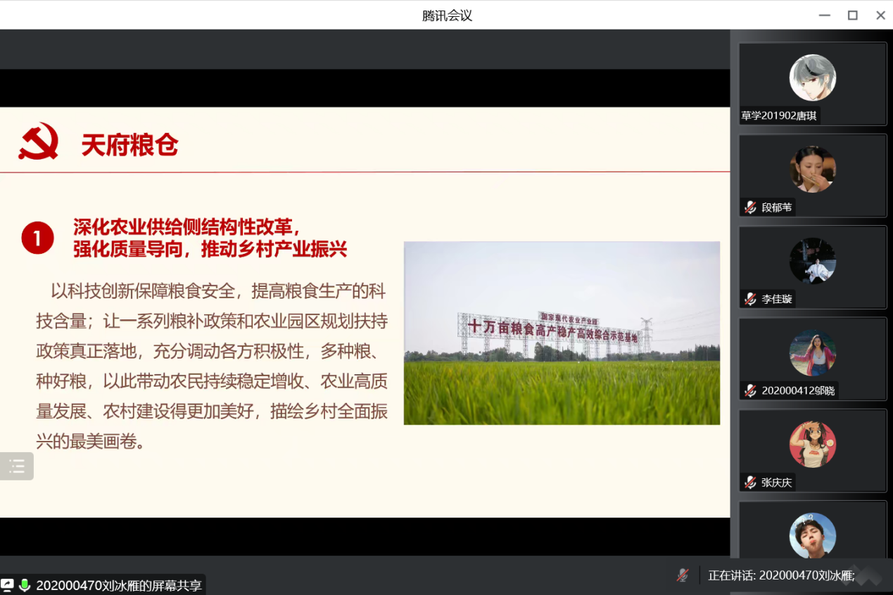 本科生党支部于腾讯会议开展以“学习习近平总书记来川视察重要指示精神”为主题的党组织生活会,刘冰雁同志担任本次会议主讲人。