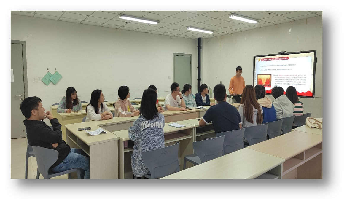 研究生田科讲解《关于深入开展学习贯彻习近平新时代中国特色社会主义思想主题教育的工作方案(校党字〔2023〕56 号)》,同时结合习近平总书记给中国农业大学科技小院学生的回信内容展开。集中学习后由支部书记张睿同志进行总结,从个人发展、国际形势、结合专业技能等角度强调了学习习近平新时代中国特色社会主义思想的必要性和重要性,希望支部党员同志能勇当强农兴农使命担当,把双脚扎进泥土里,把论文写在大地上,用自己的汗水和智慧为乡村振兴和农业强国贡献草科力量。