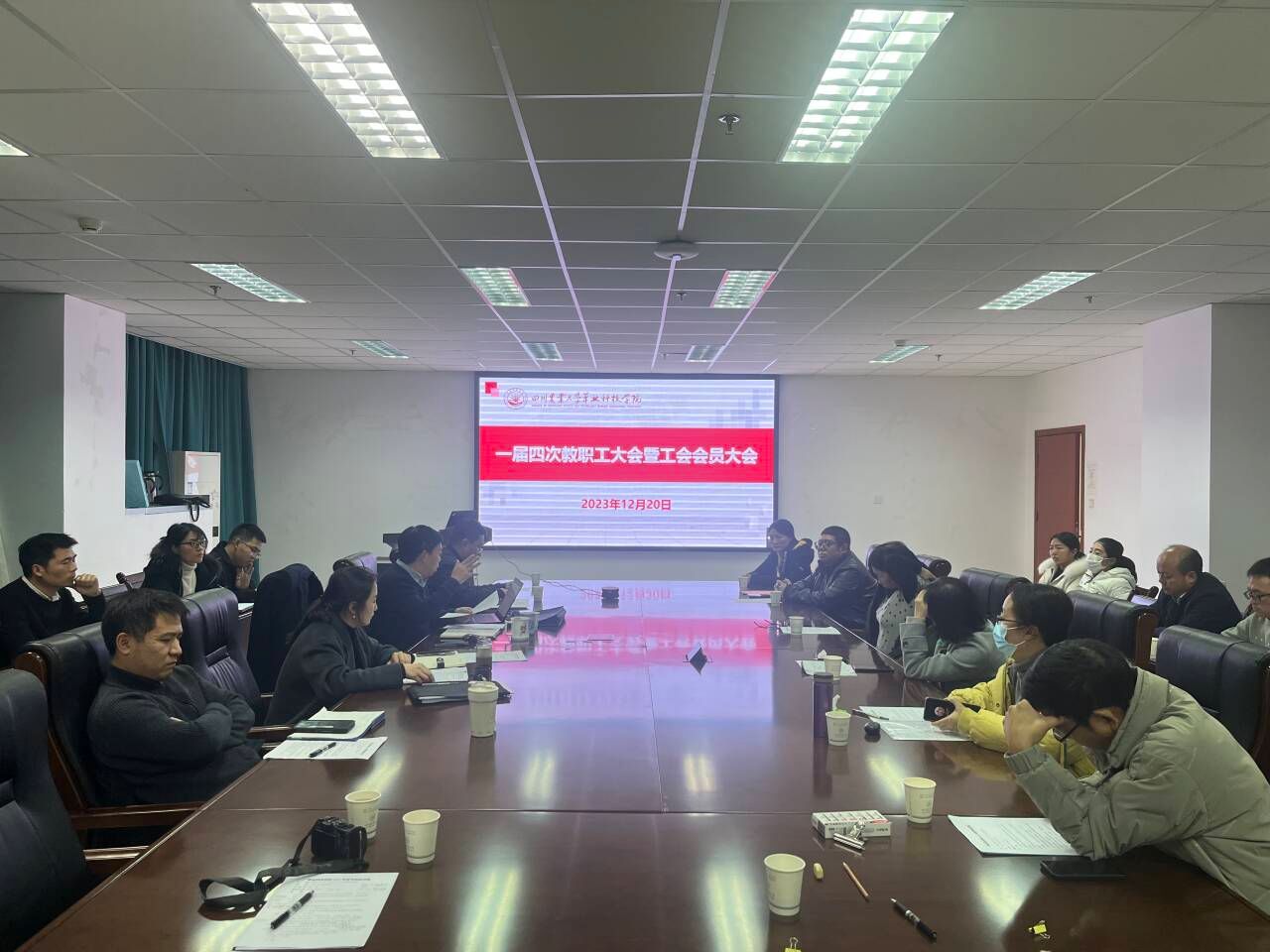 在7教307室举行一届四次教职工大会暨工会会员大会。会议总结了2023年工会教代会工作,讨论审议相关事项,并对2024年重点工作进行部署安排。会议由党委书记、部门工会主席薛波同志主持,全体教职工参会。
