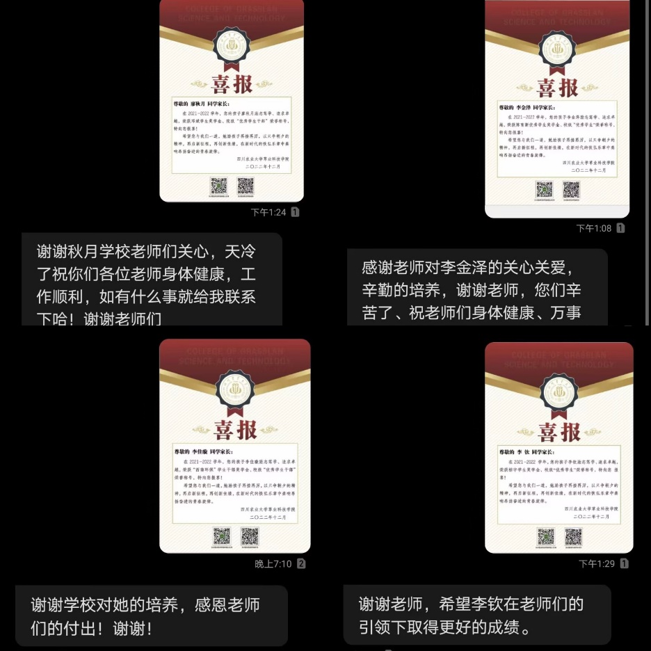 越办越好!”草学2202班邹博蕊同学家长回信如是写道。