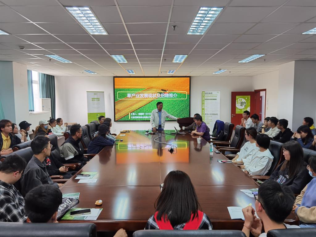 下午,北京百思特草业有限公司董事长邰建辉在7教307室举办了“草产业发展现状及招聘推介会”,向现场学生介绍了草学发展脉络、企业就业需求及行业前景。来自草学2019级的黄逸之听后谈到,“此次交流对我们的就业很有帮助,通过与草学企业的沟通和交流,不仅对草业行业有了更深入的了解,也对自己的职业发展有了新的方向和目标!”