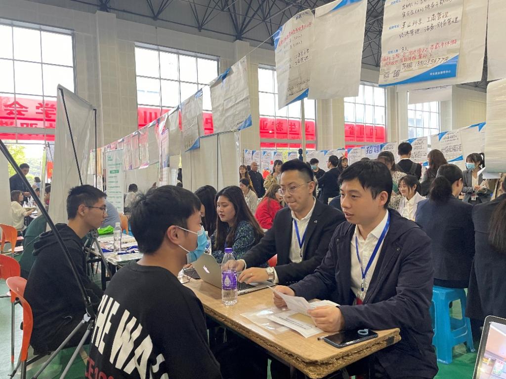 4月22日上午,学校2021届春季就业洽谈会暨2021年实习生双选会在成都校区风雨操场顺利举办。