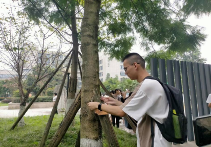 的资助下,院学生会基于草学2018级1班王一博同学自创的植物科普微信公众号“春和社”,对校园内80余种植物进行分类并制作植物名牌,标注其名称、品种、特性级用途等基础知识并附上二维码。新生在助班、驻党的带领下沿着四条不同规划路线游览校园,一边熟悉了解校园,一边为校内常见植物挂上名牌。“看,这是银杏!”“原来四教门口还有木芙蓉,这是成都市花!”新生们积极讨论看到的植物,争相上前挂牌。当遇到未知植物时,大家主动查阅资料,比对植物的花、叶、果实等特征,师兄师姐也结合专业知识进行讲解。新生们对大学第一堂“专业课”兴味盎然,争相为校园公益科普留下属于自己的印迹。“这次游园活动很有趣,在了解校园环境的同时,还能学习到专业的知识,让我对未来专业课的学习更加期待!”草学2021级4班袁苏红说道。