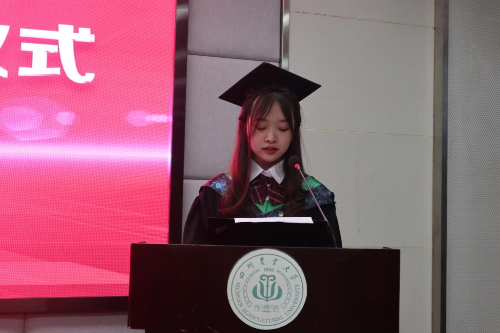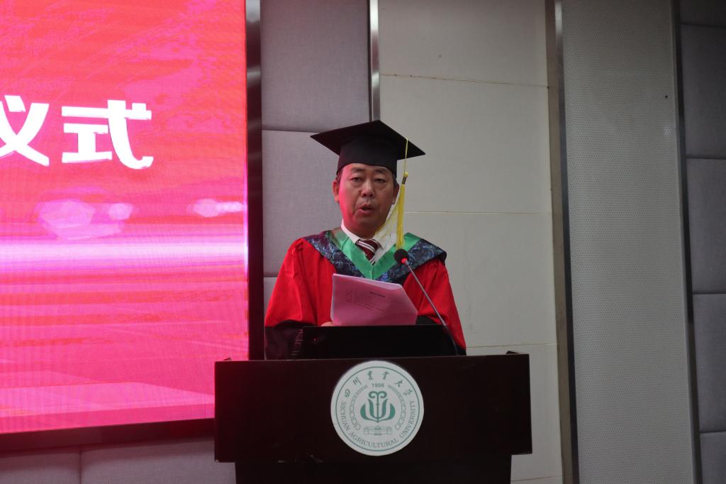 成立以来在科学研究、人才培养、社会服务等方面取得的成绩。他寄语毕业生坚定理想信念,坚守初心使命,牢记校训,弘扬“川农大精神”,心怀感恩之情,心系国之大者,走好人生每一步,收获更多的精彩,努力成为能堪当民族复兴重任的时代新人。
