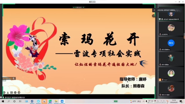 团委以线上形式举办了2022年暑期社会实践分享会。四支优秀团队结合各自实践开展情况,为20、21、22级140余名同学进行经验分享。团委廉婷老师作指导分享。