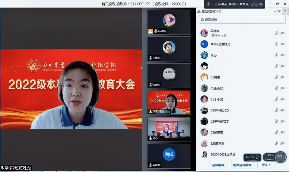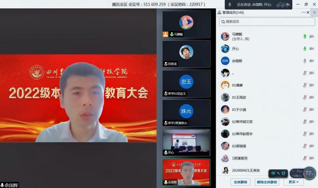 院长张新全教授,党委书记薛波副教授,副院长、纪委书记马啸教授,副院长黄琳凯教授,新生班主任,全体辅导员,助理班主任、助班党员以及2022级全体同学,以线下和线上相结合的方式参加会议。会议由党委书记薛波副教授主持。