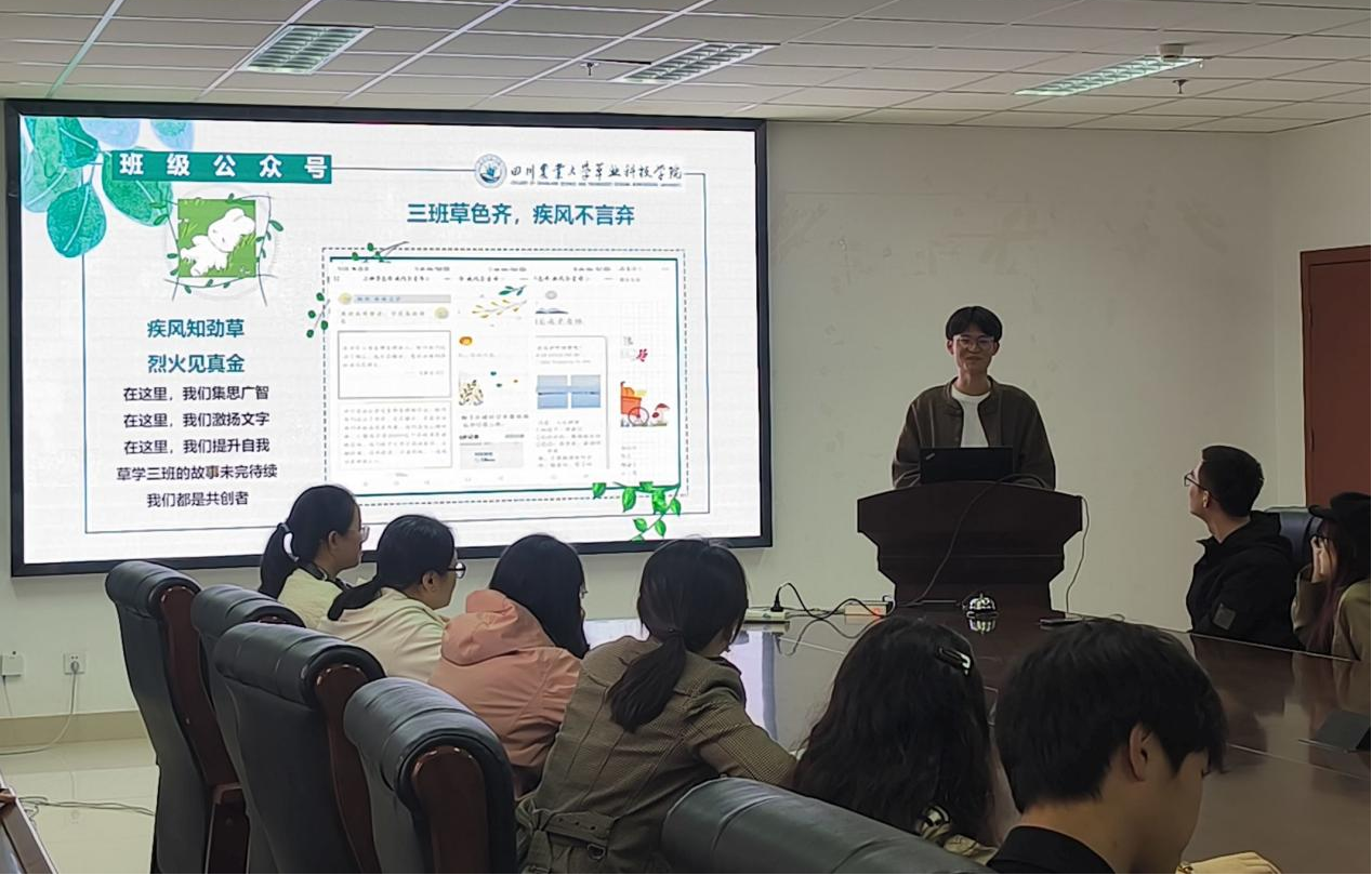 会上,草学专业和草坪专业2023级5个小班分别从班级概况、建设现状、建设方案、制度机制及未来规划等方面作陈述和汇报,并接受现场师生的问询和答疑。