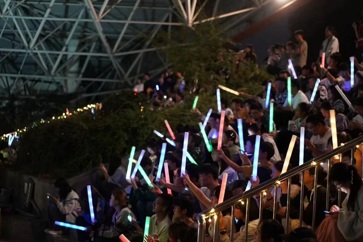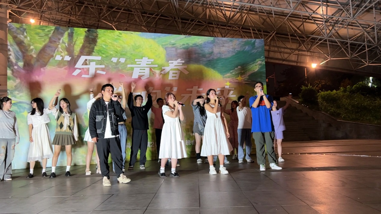 舞蹈团的女孩们以活力四射的舞蹈将现场气氛点燃,观众们手中的荧光棒随着节拍一起挥动。随后,2023级新生范恒睿、陈欣怡演唱的《只对你有感觉》再一次引起同学们的阵阵高呼。他们优美的嗓音和轻快的旋律,让下沉广场充满了欢乐的氛围。草学2202苟扬同学的一首《稻香》带领大家一同回忆起了生活中那些美好的瞬间。