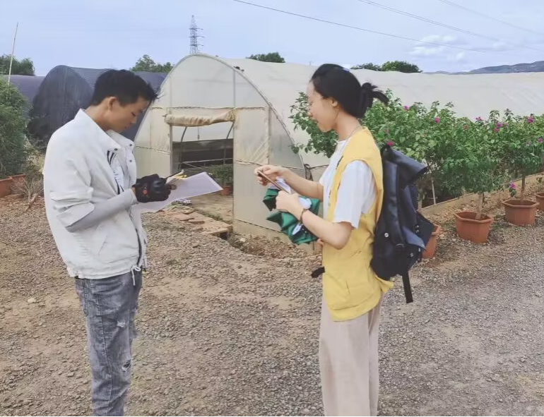 图为团队成员与花卉基地工作人员沟通