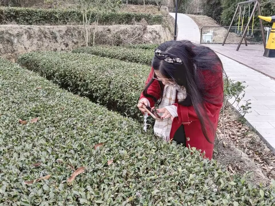 图为“茶味飘香,桂陶有韵”团队成员在园区调研拍照