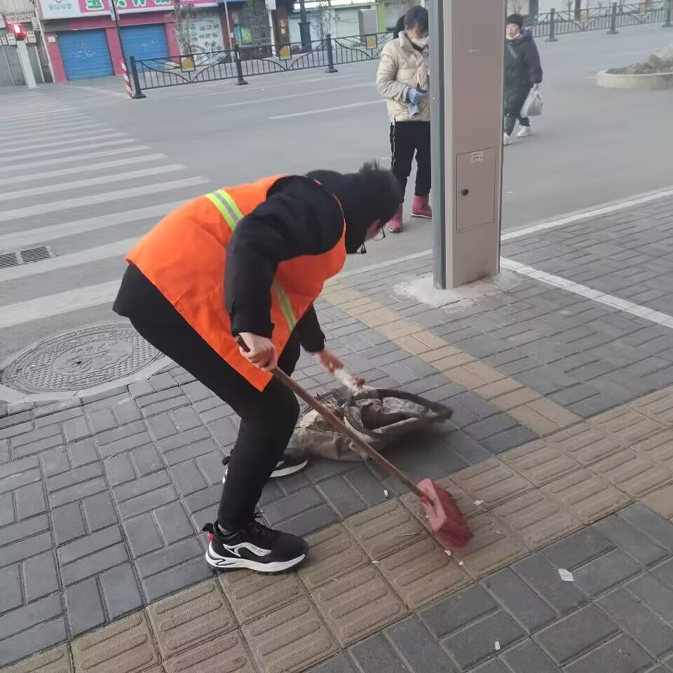 图为“青寻”团队在帮助环卫工人清扫街道
