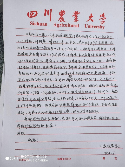 学生会权益部策划并开展了“感谢劳动者”送信合影打卡活动,以鼓励同学们用书信的方式表达对劳动者辛勤劳动的敬意与感谢。