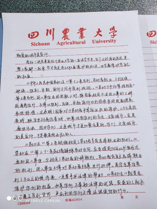 活动自发布以来,通过“青听川农”官方账号等途径进行广泛宣传,共吸引全校148人报名参与。同学们纷纷在活动动态下留言表示支持,并奔走于校园中寻找劳动者的身影,为自己心中“最可爱的人”送上感谢信。有为大家维护宿舍公共卫生的宿管老师,也有每天烹饪可口饭菜的食堂工作人员,还有守护全校师生安全的保安人员。同学们与他们合影留念,并将合影照片与自己的感悟分享在社交媒体,向大家宣传劳动权益相关知识。