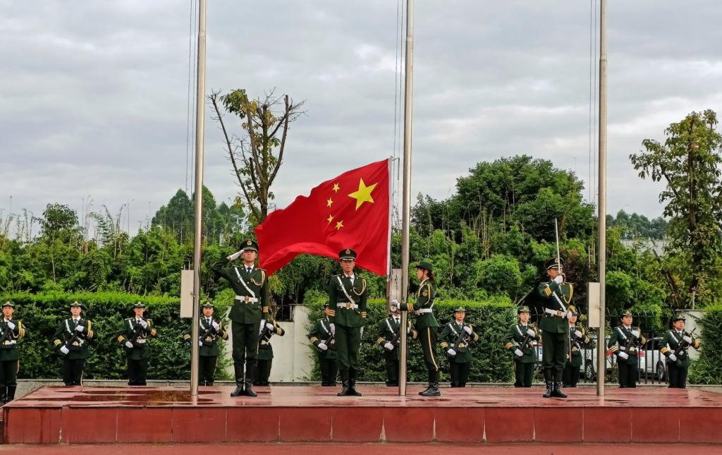 在庄严肃穆的国歌声中,鲜艳的五星红旗冉冉升起,运动会拉开了序幕。