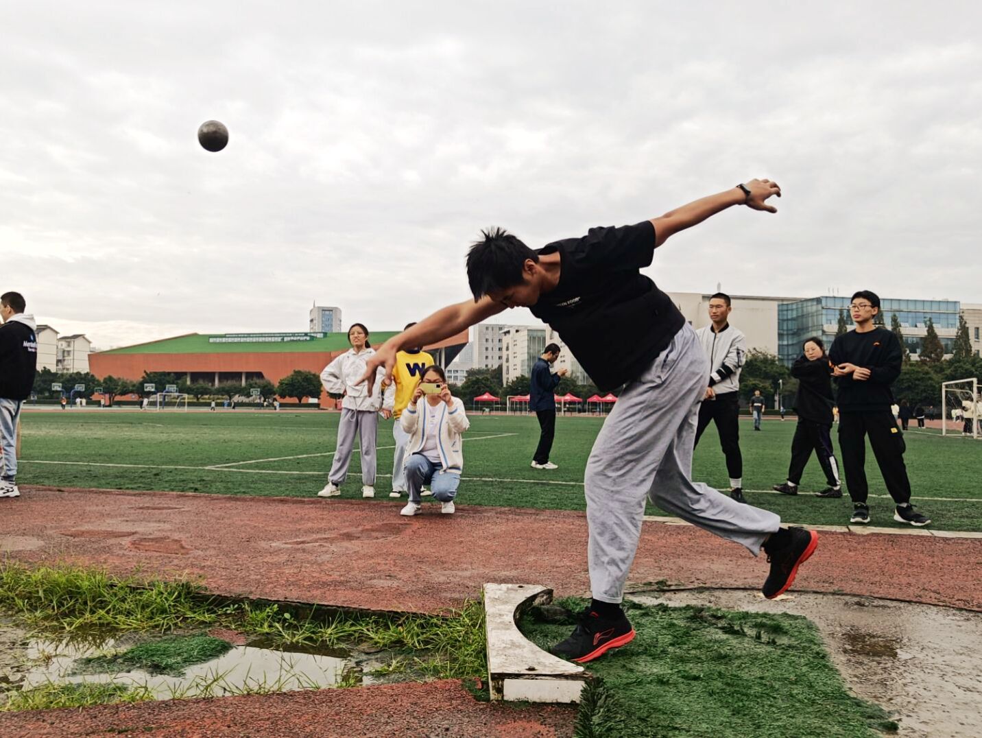 再看那田赛场上的运动员,也个个摩拳擦掌,毫不示弱。跳远的运动员为了得到更好的成绩,拼尽全力,即使失败也毫不放弃。他们瞄准目标跨出坚定的步伐,不断超越自我地一次次跳跃,这便是将来能够走得更高更远的稳固基石。参加铅球比赛的选手互相竞争,他们手中的铅球仿佛转成了一个个充满期望的许愿球,不断追逐着自己的梦想。
