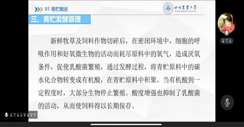 研究生麻天丽,在线上进行了饲草青贮加工技术与应用的学习,并结合自己的所学知识,向研究生麻天丽进行请教,在此过程中,实践队员边听边做好笔记。研究生也不吝赐教,认真讲解相关知识,解答实践队员提出的问题。学习结束后,实践队员表示自己收获颇丰,研究生师姐认真、耐心的讲解不仅让他们学到了更多知识,更为他们去往养殖一线进行实地的调研宣传提供了信心和勇气。青贮技术作为一项有效的饲料保存方式,能够提高饲料的营养价值、延长保存时间,为畜牧业发展提供有利保障。同时,通过科学利用青贮技术,可以有效降低养殖业对环境的污染,促进农业绿色发展,大有裨益的青贮技术值得被广泛应用。