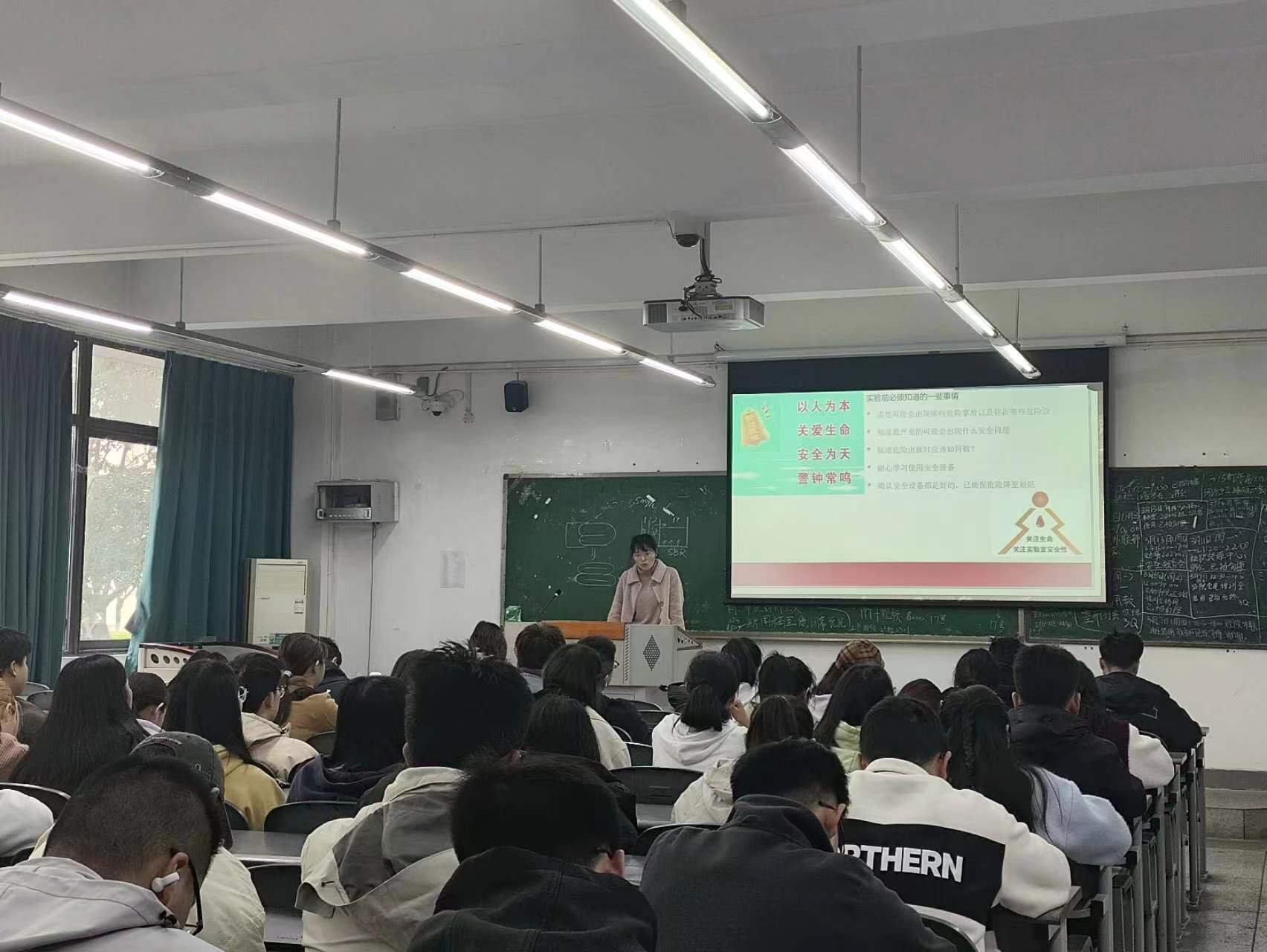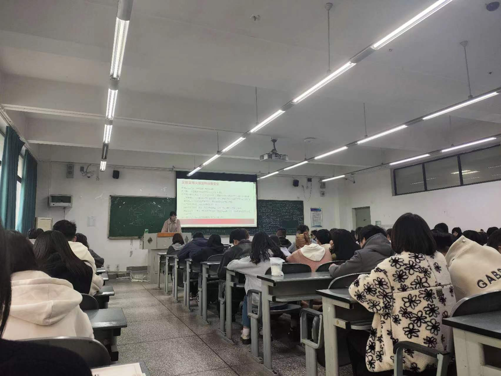 实验室概况和实验室管理规章制度,围绕实验室常见危险源及防护、仪器设备使用注意事项、危化品订购及管理、有毒有害物质使用注意事项及事故发生后的应急处置措施展开培训,着重强调了实验室用水用电基本安全、大型精密仪器使用及保护、易燃易爆物危化品使用及回收注意事项等方面,并提出实验室使用的基本要求和实验过程中需遵守的实验室规章制度。讲解深入浅出,为师生们上了一门生动的安全培训课。