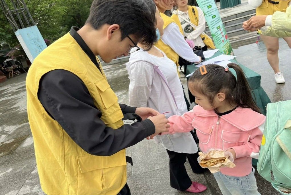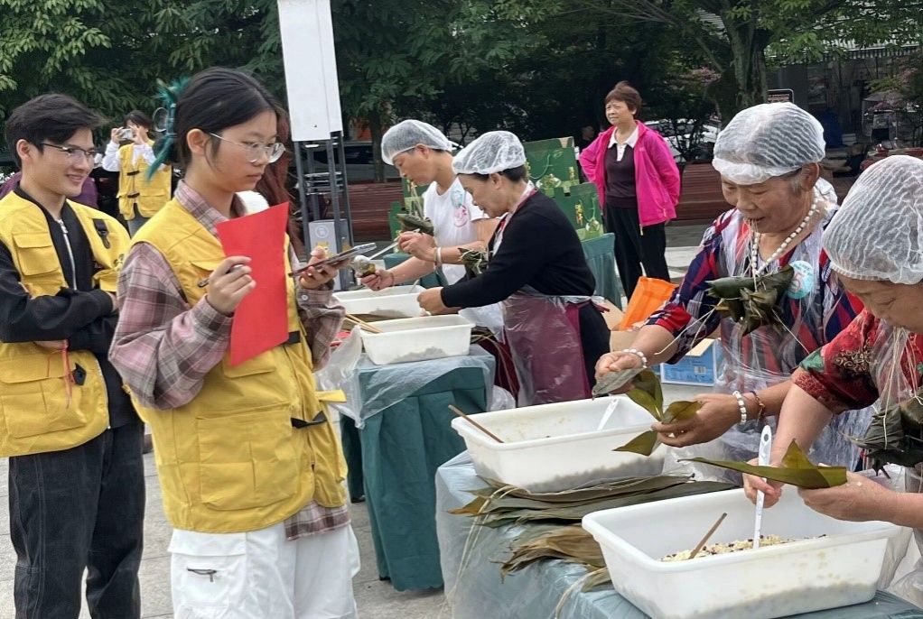 团委实践与志愿服务部组织志愿者前往城武社区文化广场开展“欢欣端午·‘包粽’平安”主题迎端午活动,与社区一同举行包粽子大赛。