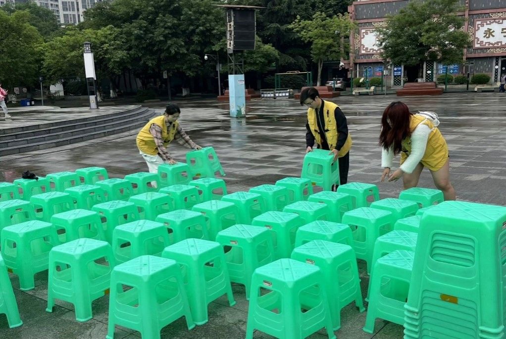 活动当天,在工作人员的带领下,志愿者前往活动场地有序开展服务工作。一部分志愿者进行场地布置,摆放好活动所需的糯米、粽叶和麻绳等物资。另一部分志愿者组织参赛选手填写个人信息,做好参赛准备,并为选手分发号码牌和五彩绳。对于一些不识字的老年人,志愿者们耐心引导,细心帮助他们解决困难。