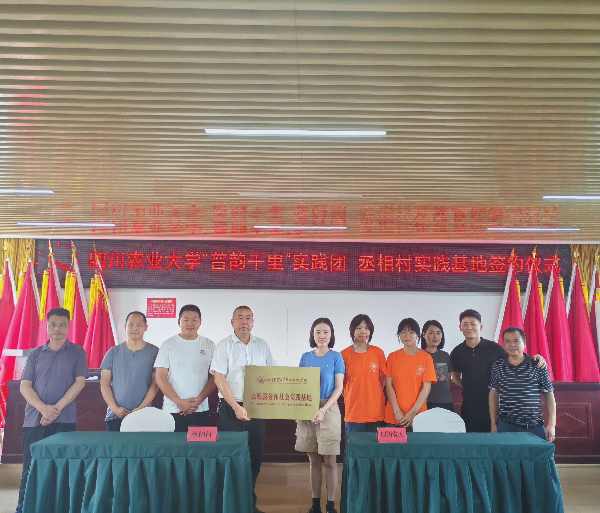 与仁寿县虞丞乡丞相村村民委员会举行社会实践基地协议签约暨挂牌仪式。丞相村党总支书记甘泉、驻村选调生杨熙昭、包子漫画