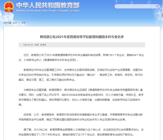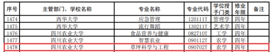 近日,教育部公布了2021年度普通高等学校本科专业备案和审批结果,新增1961个专业点、撤销804个专业点,31种新专业列入《普通高等学校本科专业目录》。全校新增3个专业获批招生,我院申请的“草坪科学与工程”可自2022年起开始招生。