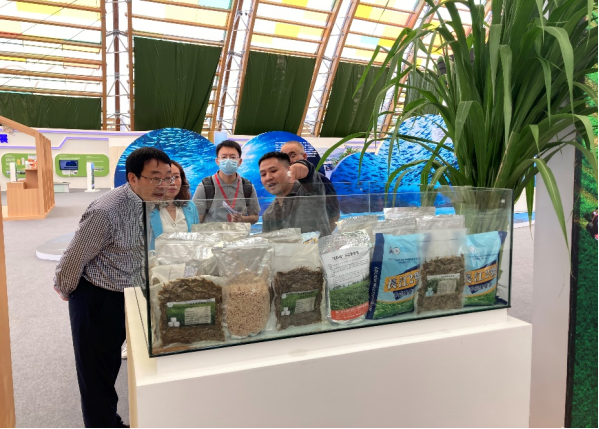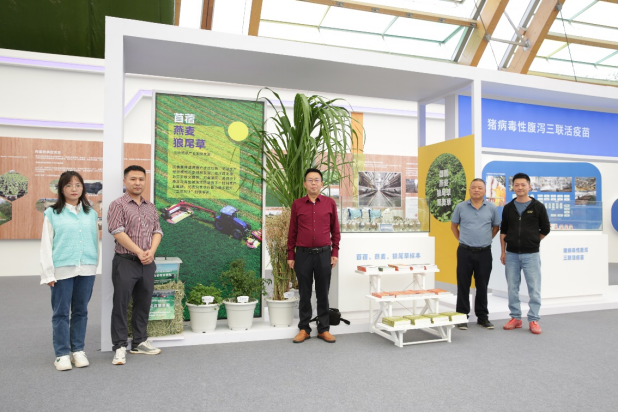 选育的国审牧草新品种——“长江2号”多花黑麦草、“英迪米特”燕麦、“福瑞至”燕麦,“罗特”白三叶和“CN002”象草新品系等优质牧草,以及利用自主研发的乳酸菌生产的混合青贮产品,在3号馆“大国粮仓”科技馆展出。四川省农科院牟锦毅院长、四川省农业农村厅伍修强副厅长先后观摩了优质牧草展台,详细了解相关研究情况,并对下一步科学研究作出指示。