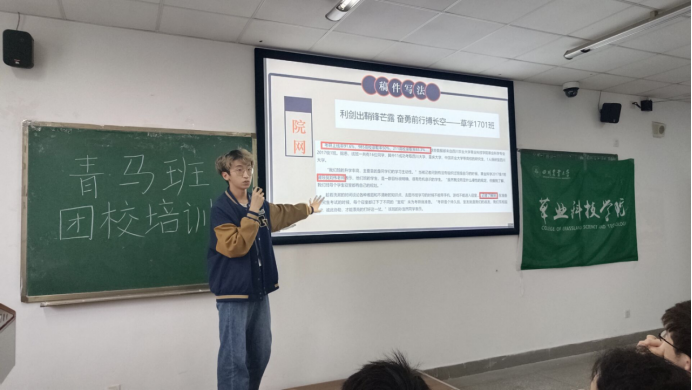 团委组织部负责人李昊远为青马班学员讲解了作为共青团干部的职责,涉及青年大学习、团日活动、智慧团建、对标定级等内容。他提出,作为共青团员,特别是共青团干部、学生干部,我们应时刻牢记团组织和党组织对我们的嘱托,成为具有“忠诚的政治品格,浓厚的家国情怀,扎实的理论功底,突出的能力素质,忠恕任事、人品服众”的青年政治骨干。