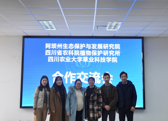 12月7日上午,四川阿坝州生态保护与发展研究院肖敏副院长、袁方柯、唐灏以及四川省农科院植物保护研究所魏真真副研究员、王毛助理研究员一行来院交流。包子漫画 党委书记薛波、草育种与栽培系张海琴教授等参加座谈会。