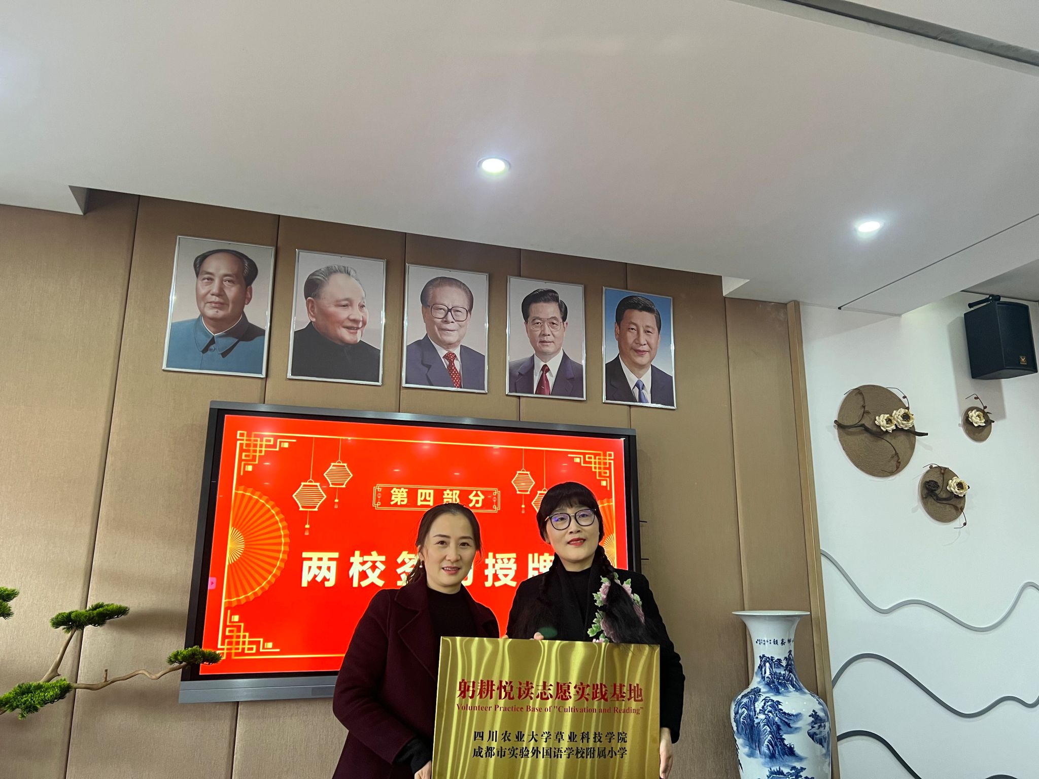 为成都实外附小学躬耕悦读志愿服务实践基地授牌。