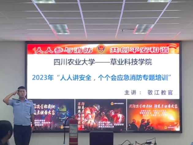 邀请四川成都利蜀消防中心的安全宣传员敬江教官给2023级研究生新生、新进教师等带来消防安全知识宣讲。