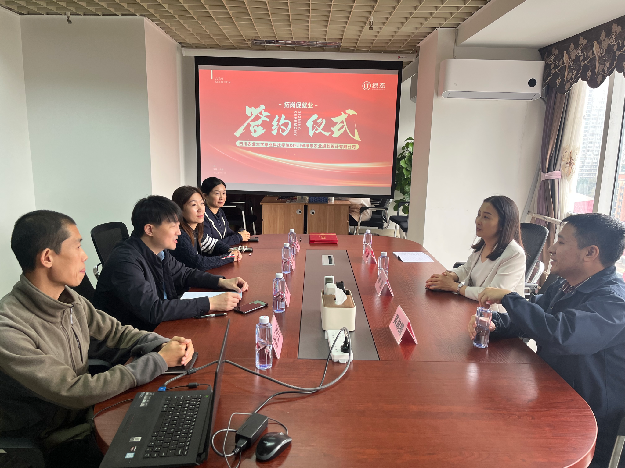 在四川省绿态农业规划设计有限公司,薛波一行深入了解了企业发展及人才需求等情况,双方围绕人才培养、项目共建、科研合作、产教融合等方面进行了交流,并举行了就业实践与教学实习基地签约授牌仪式。