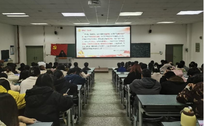 活动在曾园、刘雁飞等四位同志充满激情的声音中拉开帷幕。伴随着如流水潺潺的轻音乐,同学们把自己对伟大的中国共产党的真挚热爱之情融入到《请党放心,强国有我》朗诵词的优美语言中,生动抒发着每一行文字背后的情感。一个个声情并茂的片段,一阵阵发自听众肺腑的掌声构成了活动的热烈场面。