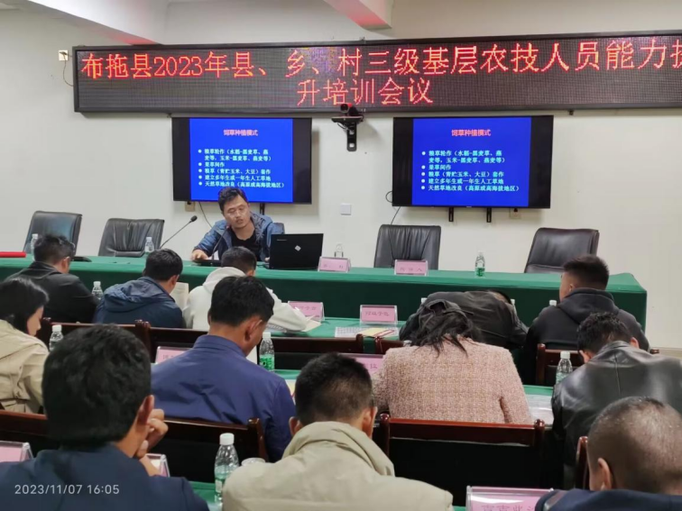 12月7日,我院马啸教授受邀参加了布拖县2023年县、乡、村三级基层农技人员能力提升培训会议,并就适宜布拖县的饲草种植模式做专题报告。报告深入剖析了凉山州的气候特点,包括温度、降雨和日照等因素对饲草生长的影响,并介绍了适应布拖县饲草品种,针对布拖县气候、土壤和畜牧业特点,提出了多套适应当地条件的饲草种植模式。同时,还就凉山州的土壤质地和养分状况提出了相应的土壤改良措施。与会的农技人员对专题报告表示了高度认可和赞赏,并就具体实施细节和技术要点进行了提问和探讨。布拖县农业农村局、饲草站、各乡及重点村80余人参会。