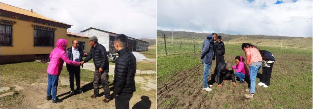 科技特派团专家们在红原县科学技术与农业畜牧局王春贵书记及工作人员陪同下,前往红原县瓦切乡唐日村和达峨村,走访了唐日牦牛合作社和牧草种植专业户泽郎夺基,为农户开展免耕补播、退化草地恢复治理和青干草贮存技术指导。