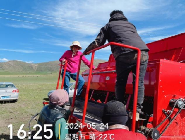 草地资源与生态系主任刘琳教授带领博士生严飞和硕士生王文龙等,前往红原县瓦切镇进行科技帮扶工作,现场指导实施退化天然草地有机底肥施用、草种选择、配比和播种等机械化免耕补播技术作业。
