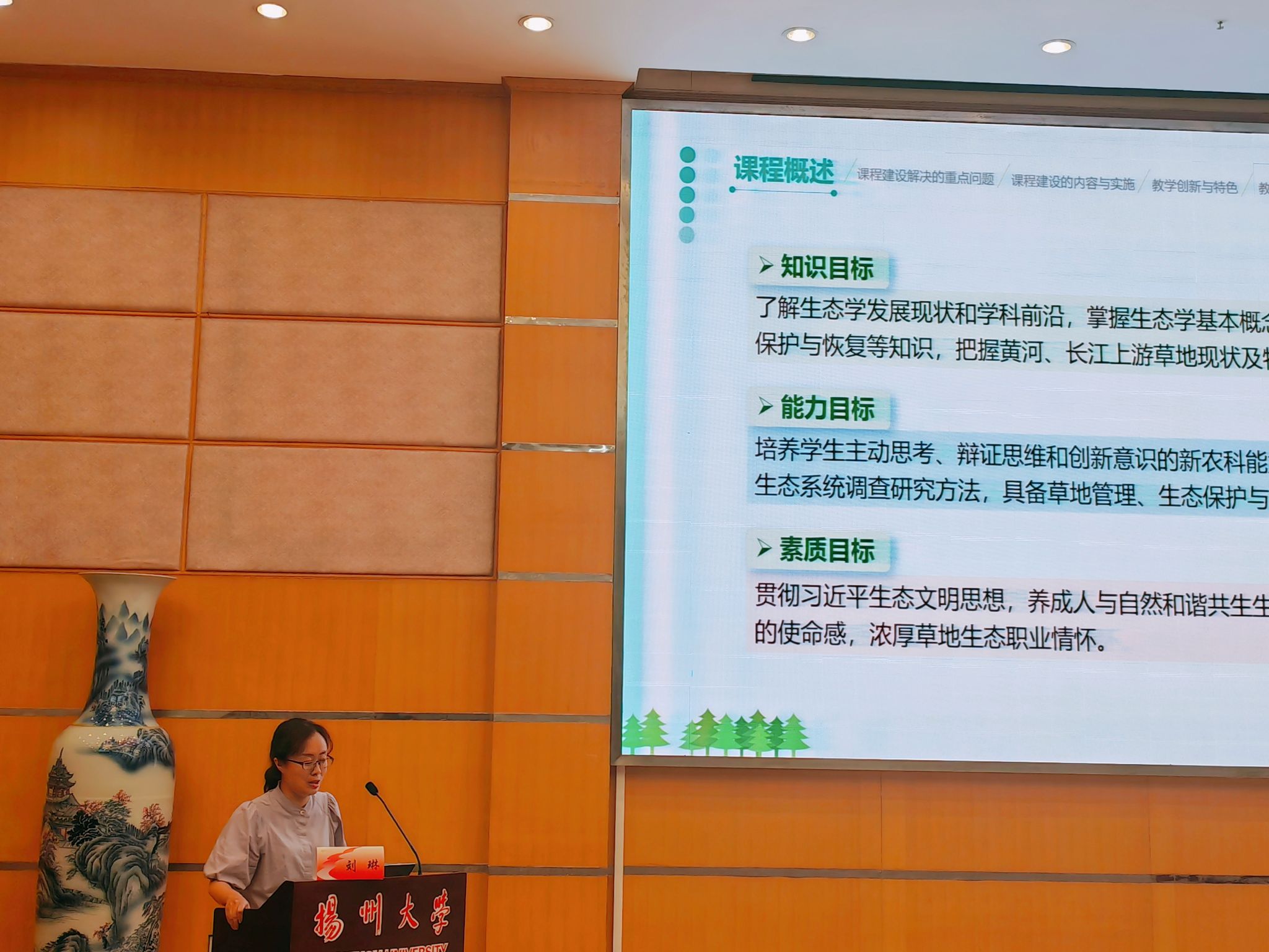 刘琳教授以“草地生态学国家级一流课程申报经验交流”为题,就课程建设情况及成效等进行了汇报。