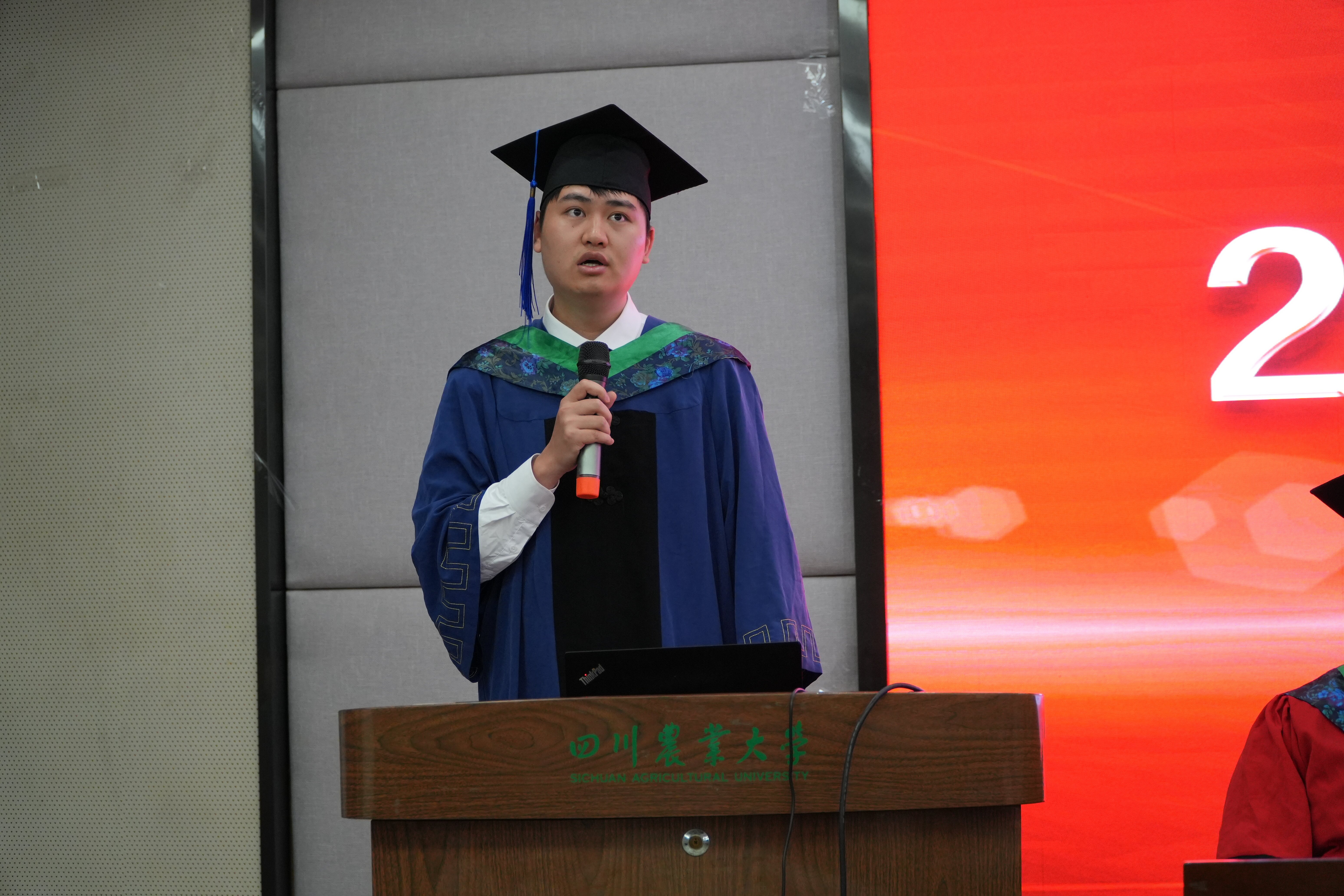 草学2021级硕士研究生廖宗超代表毕业研究生发言。他是包子漫画