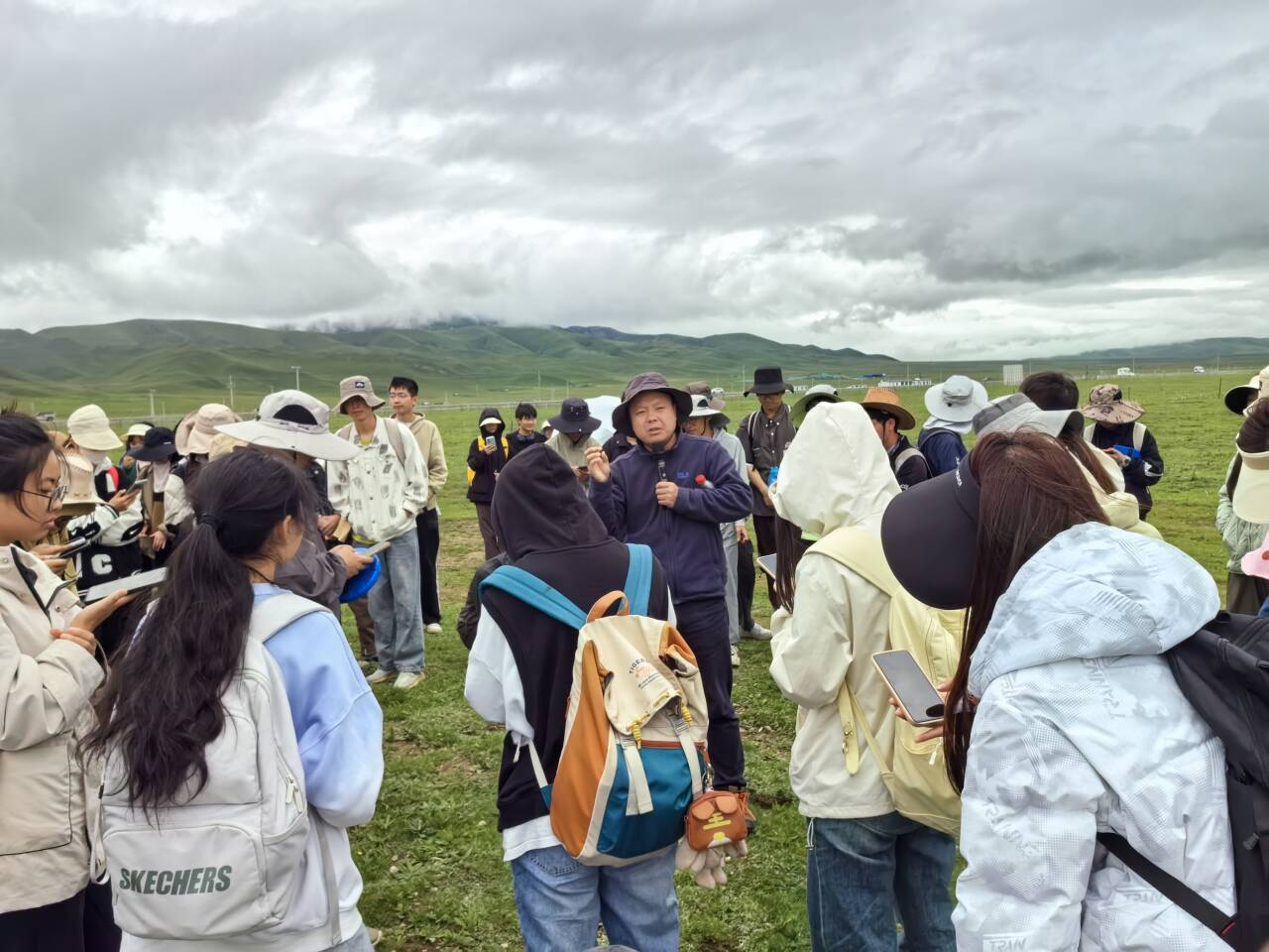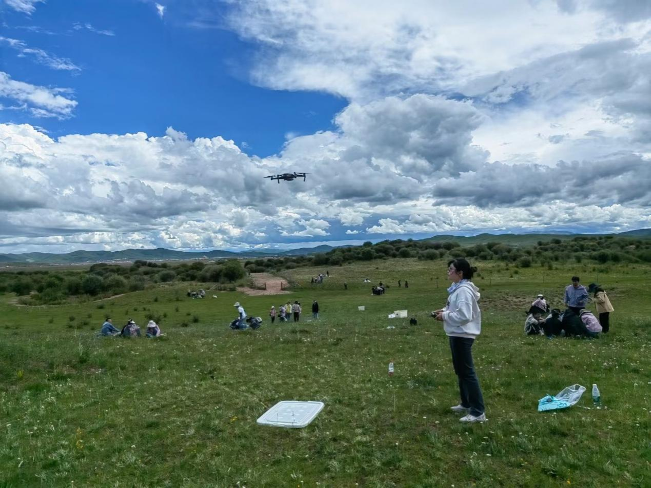 若尔盖草原鼠害发生严重,老师详细讲解了鼠害发生的成因、调查与监测方法、防控措施,并实地进行草原鼠类种群密度调查,并示范讲解了无人机调查方法,同学们了解了川西北草原常见鼠类分布及在草地生态系统的地位和作用。