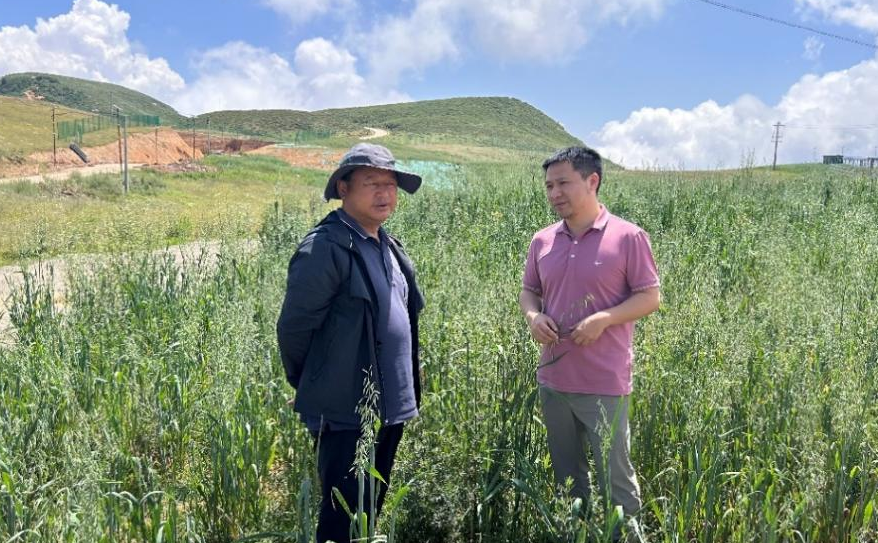 牧草种植示范区进行狼尾草新材料种植筛选。在山羊原种场厂长阿木带领下,黄琳凯教授对基地内狼尾草栽培管理、越冬管理、收获利用等技术进行现场指导,并对农户提供狼尾草种植栽培相关技术培训。