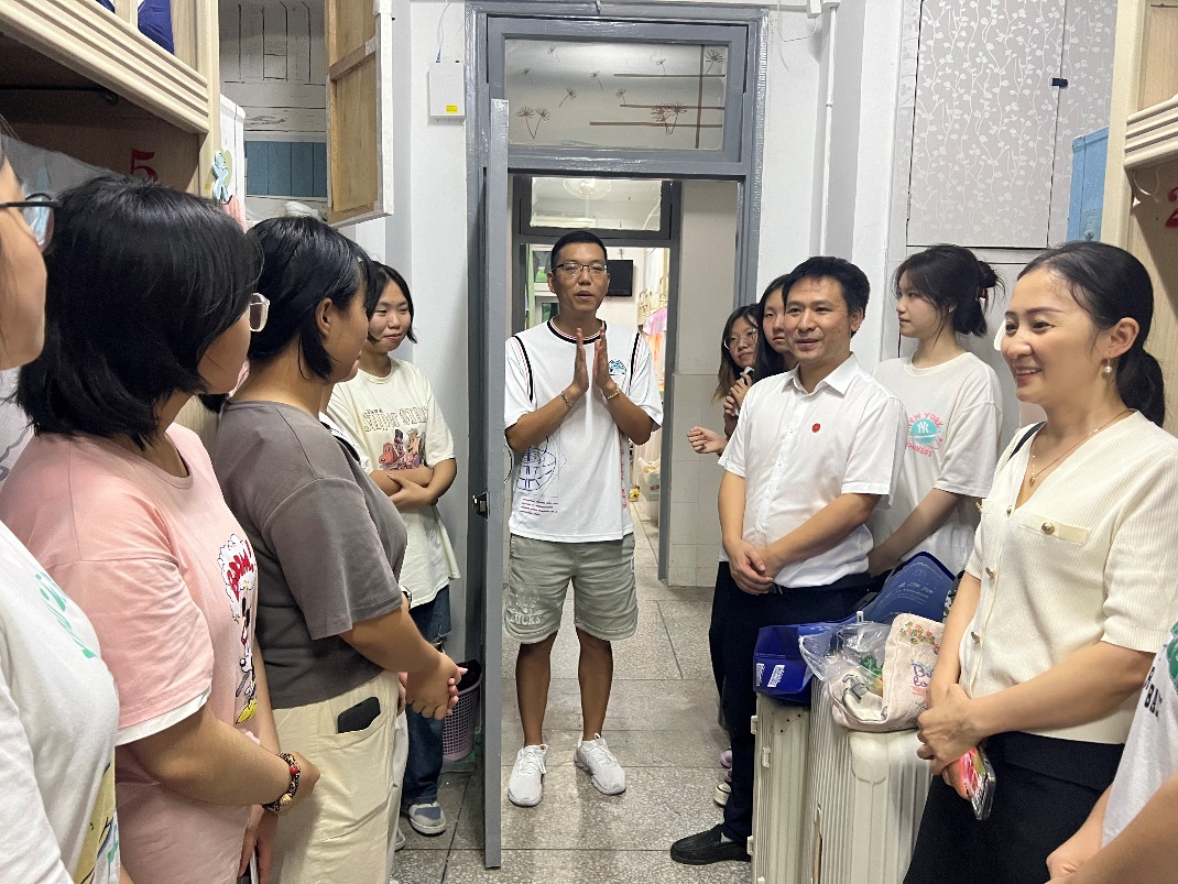 院长黄琳凯、党委书记薛波以及辅导员、新生班主任及助班驻党一同走进全院各新生寝室看望并慰问2024级新生。