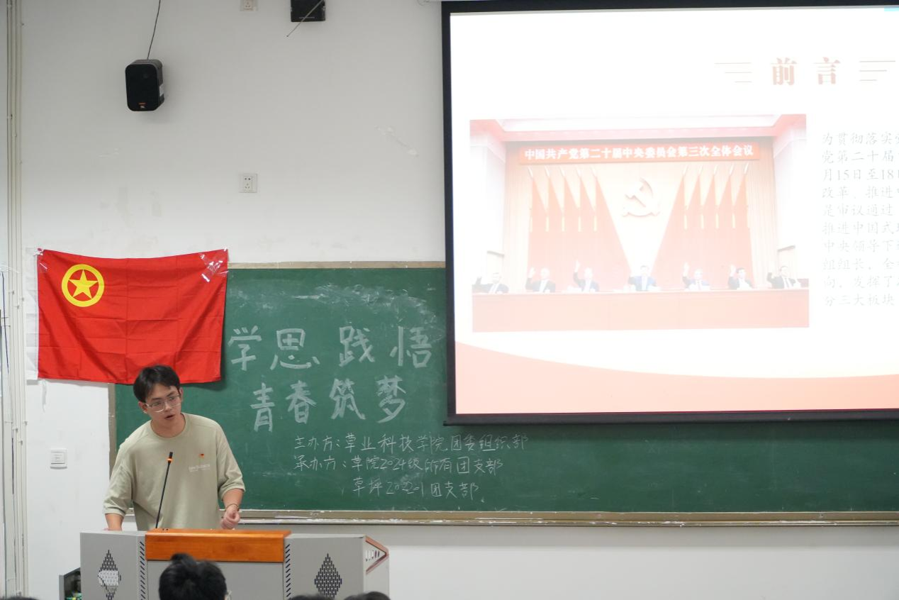 团委组织部联合草坪202201团支部及2024级全体团支部共计近200名团员青年在4A-107举办“学思悟践,青春筑梦”主题班团活动。
