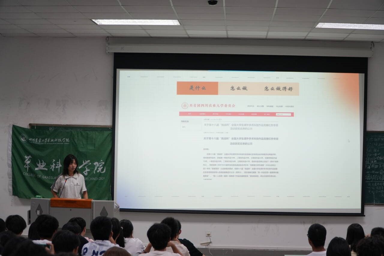草学202102班熊春森重点解读了中国国际大学生创新大赛、“挑战杯”大学生创业计划竞赛、“挑战杯”大学生课外学术科技作品竞赛三大赛事的赛制规则及侧重点异同,提示大家要注意“对症下药”。同时,他还强调要加强心理建设、享受大赛过程,才能帮助团队更健康地成长。