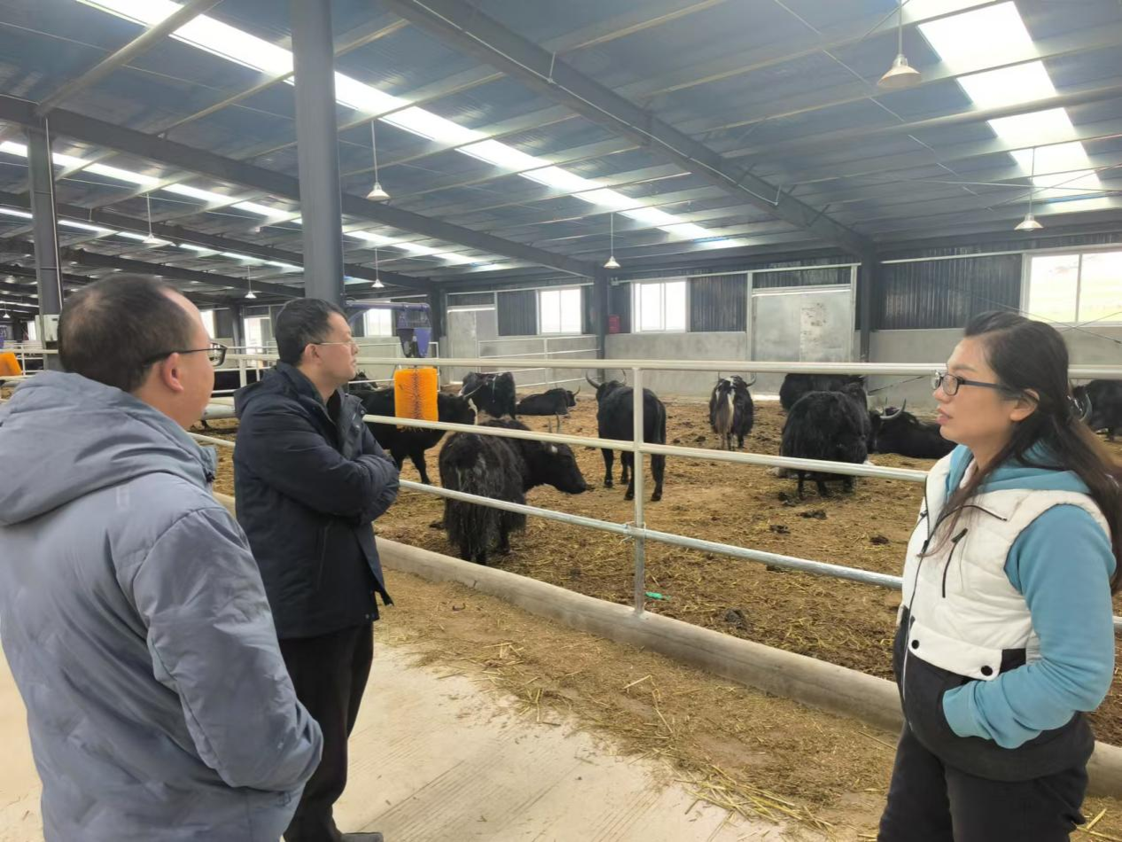 在阿坝县农业畜牧和水务局畜牧业处主任马永翔、站长马钰、现代畜牧产业发展有限责任公司总经理甘生海等人的陪同下,闫艳红赴牦牛养殖场调研了牦牛饲料配方及青贮饲料使用等情况,与公司负责人和管理人员进行交流,对存在的问题进行了技术指导。闫艳红指出:“草产品加工技术是连接草牧业种植和畜牧业生产发展的重要一环,不断完善升级草产品加工技术是推动种养循环建设的有效措施。”
