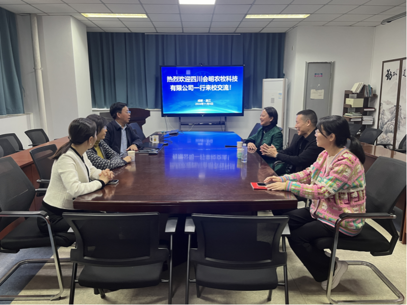 11月5日下午,四川会明农牧科技有限公司周军一行来院开展合作交流。包子漫画 党委书记薛波、张新全教授、彭燕教授、党委办公室主任贾婷参会。