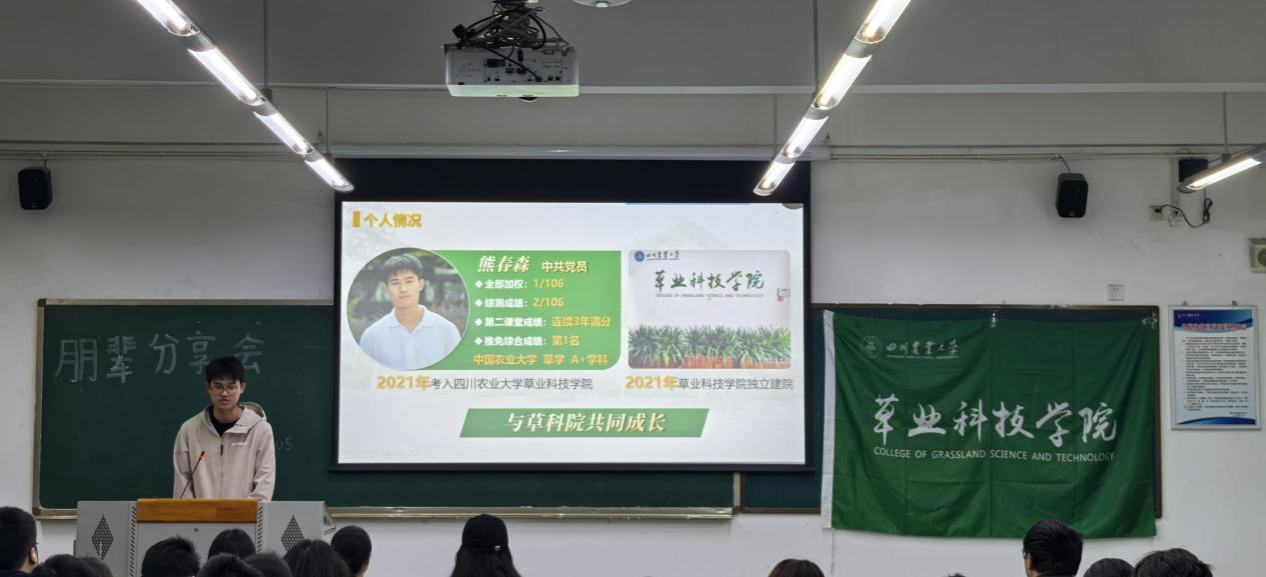 获得2023-2024年度国家奖学金、推免综合成绩全院第一的熊春森,综合素质测评成绩连续三年排名同年级同专业第一的蔡雪琪,文科生在草学专业成功逆袭并推免至中国农业大学的王婧,获得第七届感恩中国近现代科学家助学金的李瑶,带领团队获得第十四届“挑战杯”秦创原中国大学生创业计划竞赛国家级铜奖的梅刚雨,第27届研究生支教团成员张云飞,六位同学从学习经验、科研竞赛、学生工作、勤工助学、实践志愿等多方面进行分享和交流。