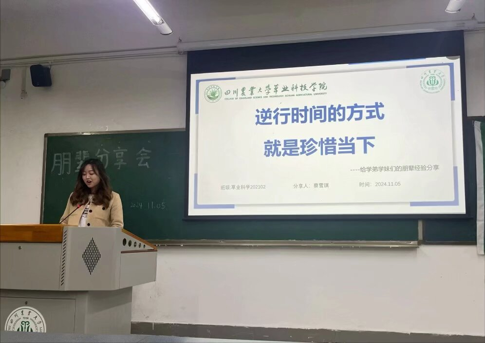 “听了师兄师姐们的分享,我对之后的大学生活满是憧憬。我将以他们为榜样,将这些宝贵的经验运用到学习、工作和生活中。接下来,我也会认真规划自己的大学生活,并朝着规划目标全力拼搏!”草学202401杜婕如是说道。