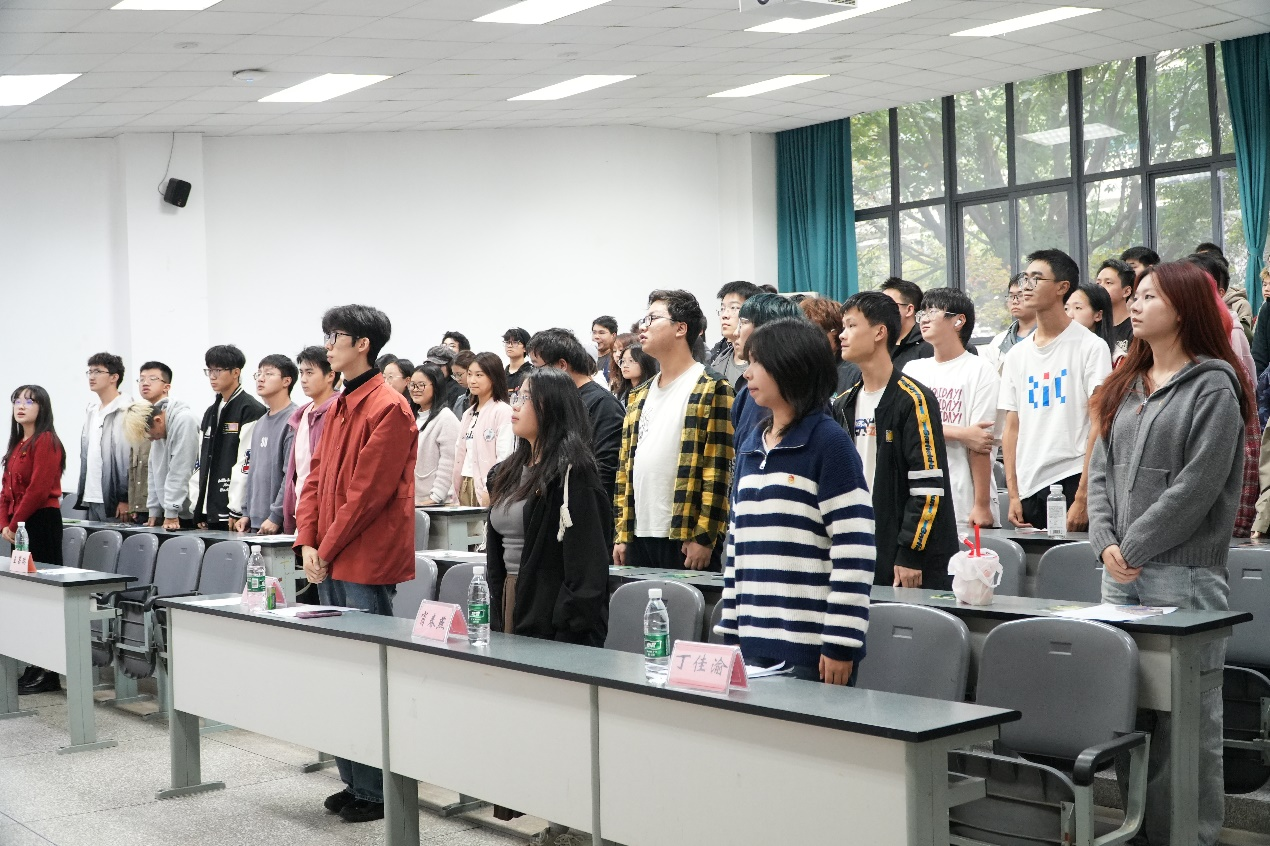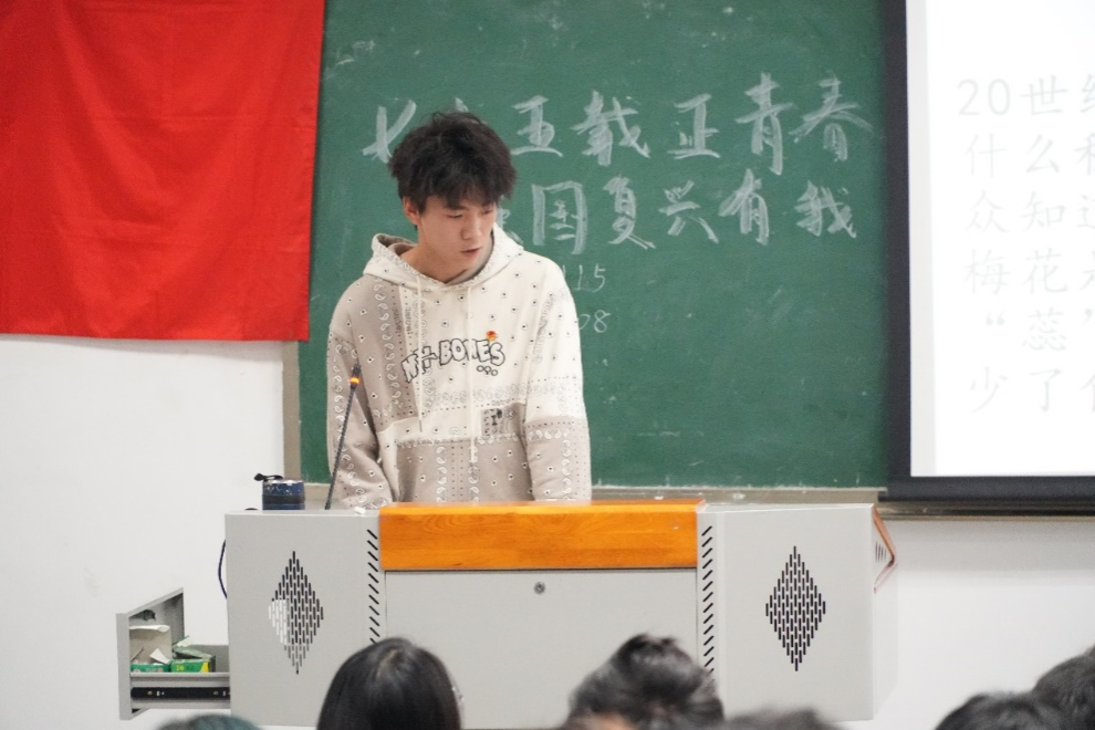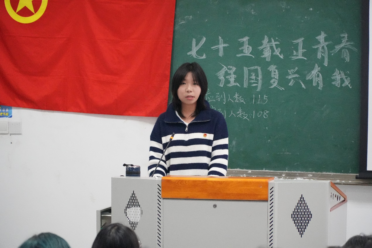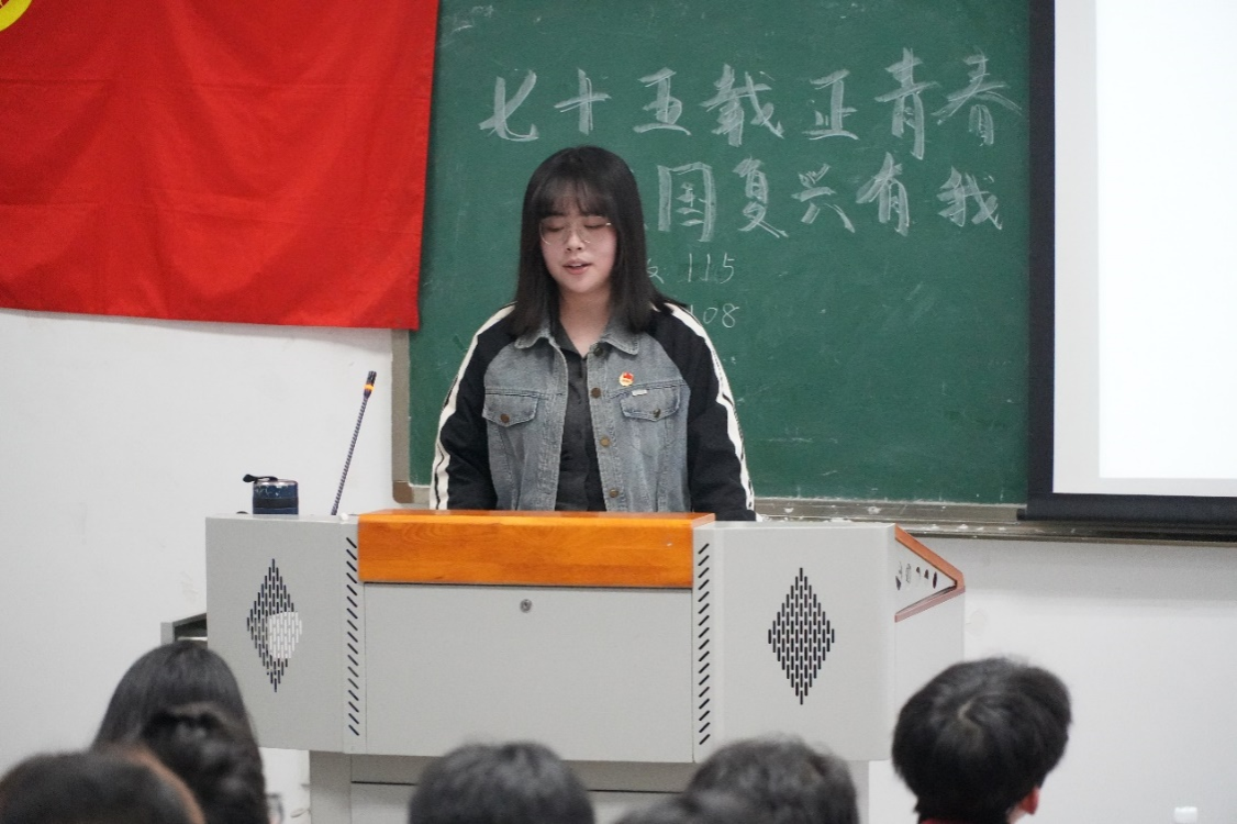 组织部联合组织两院6个团支部在4A-103教室举办“七十五载正青春,强国复兴有我”主题示范性班团活动。