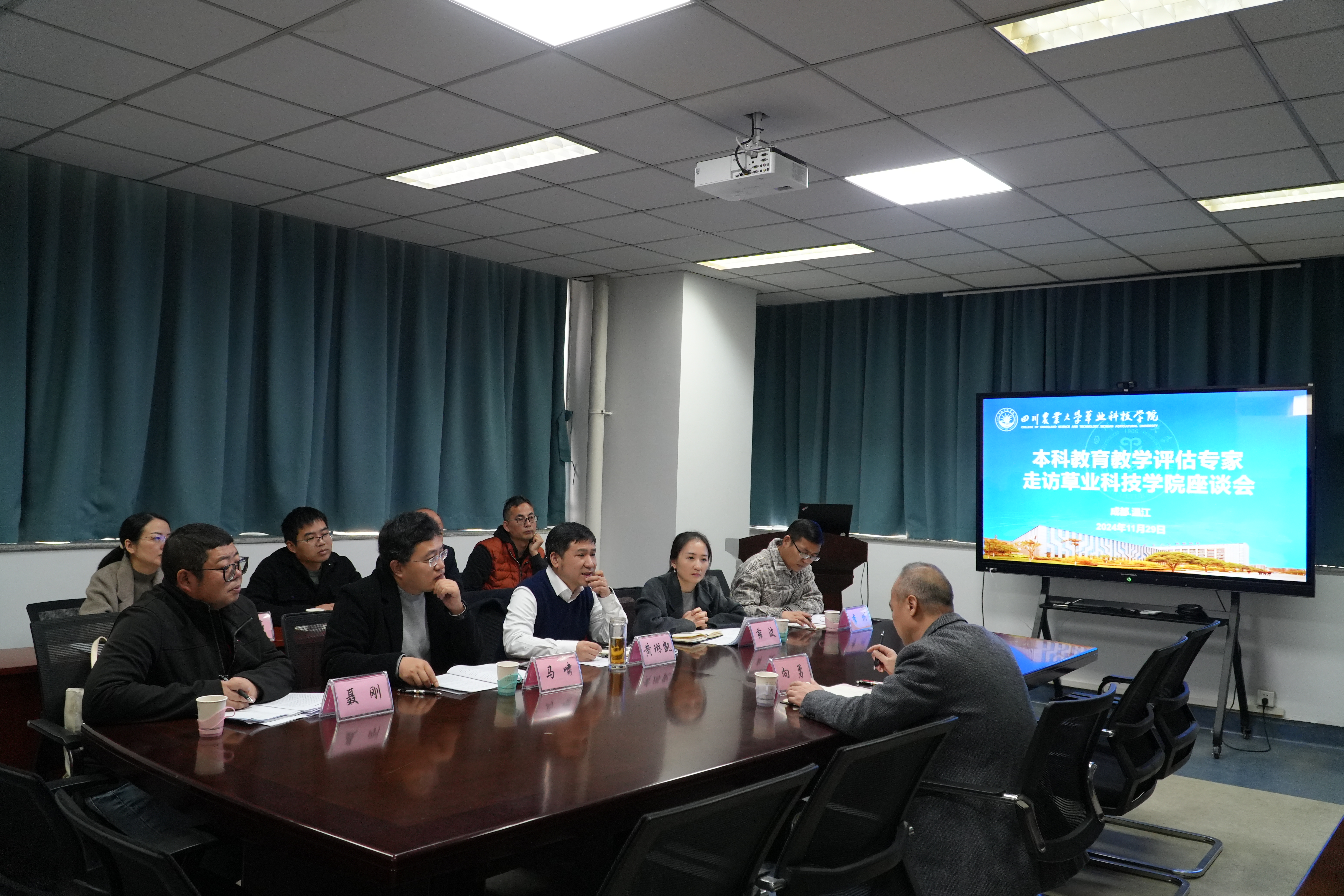 在人才培养、科学研究以及社会服务等方面做出的成绩给予了充分肯定,同时重点围绕师资队伍建设、人才引进、人才培养、学生培养及学生就业等方面进行提问与交流。