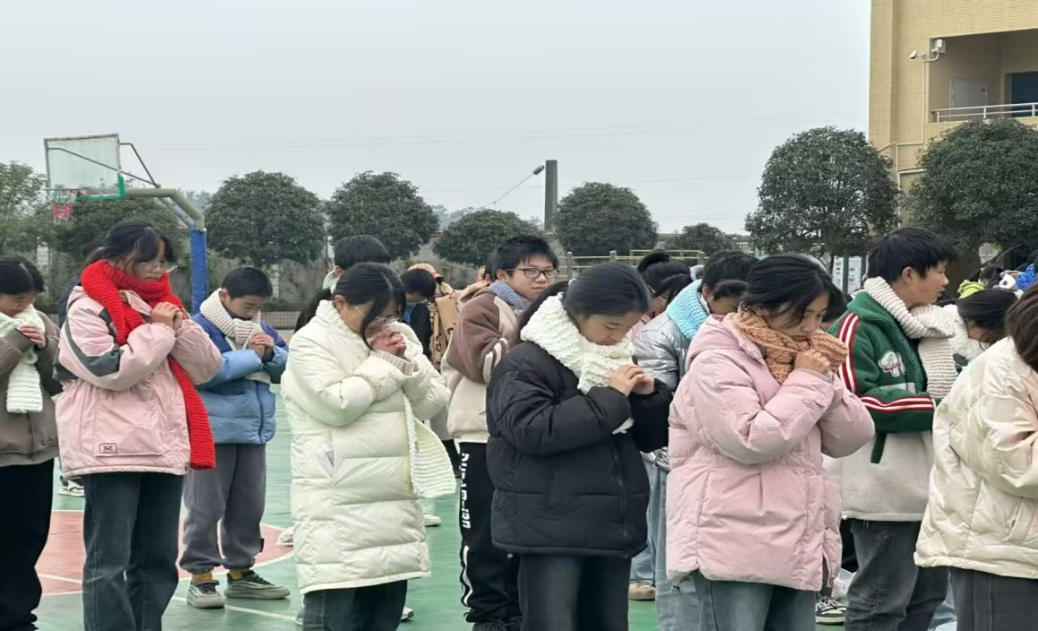 实志部成员带着凝聚着同学们深情厚谊的900余件围巾,前往资中县明心寺镇中心学校为小朋友们送上温暖。在学校工作人员的协助下,他们为孩子们一一分发写满祝福的贺卡,并亲手为孩子们佩戴上围巾。孩子们脸上洋溢着纯真的笑容,眼神中充满了惊喜与感动。宋昭颖同学在收到小朋友充满童真的贺卡回信后,感慨万分:“感觉我们触动到了小朋友的心灵,就像一棵树摇动另一棵树,我想这就是社会实践和志愿服务的意义所在。”
