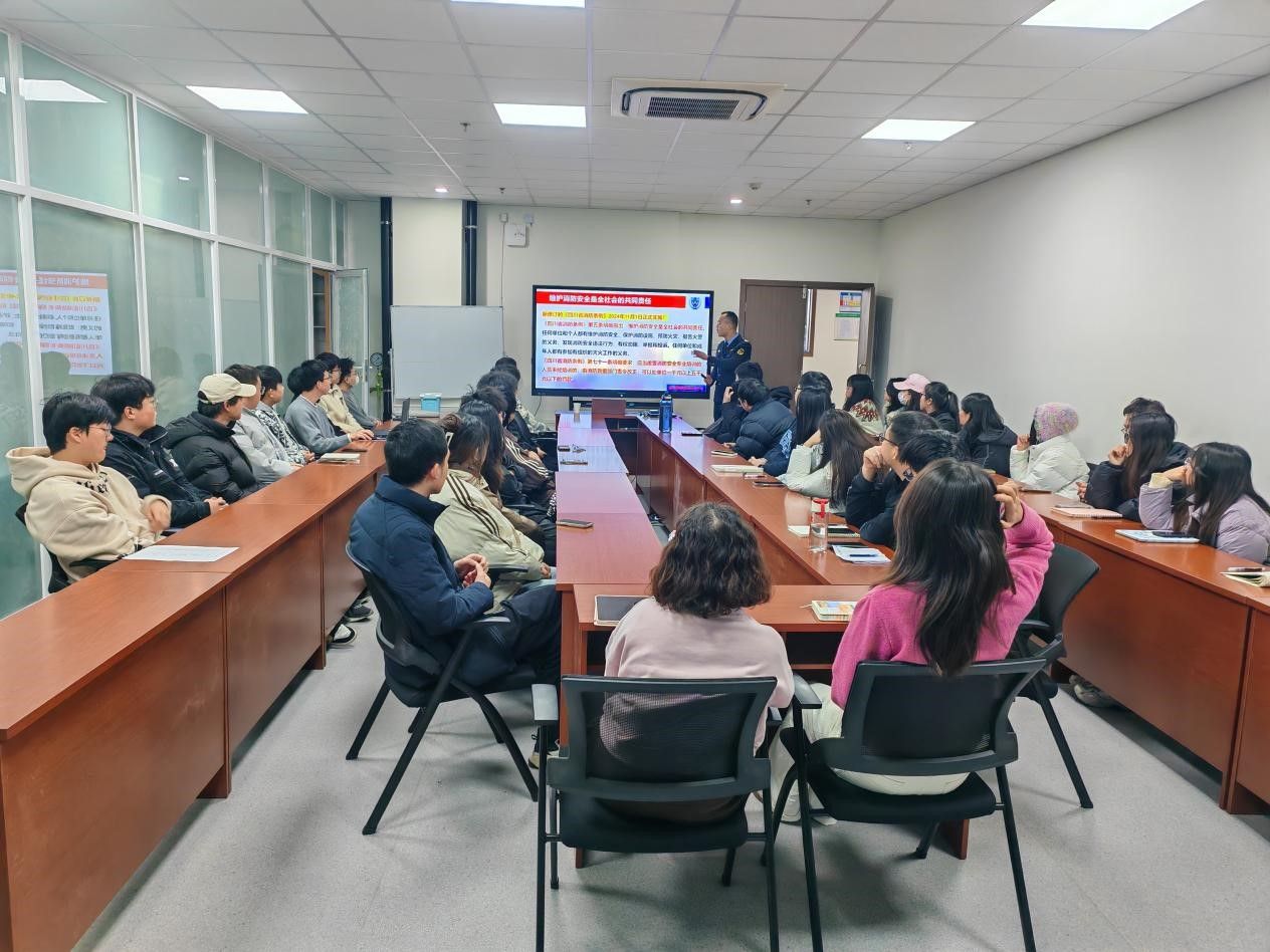 首先,陈教官从消防安全责任制、消防法有关规定等法律法规入手,阐明消防安全的重要性。而后通过火灾现场视频、图片等方式,讲解实验室用电安全隐患,并对河南、江苏、成都几起火灾典型案例等进行了详细分析,从身边火灾隐患为切入点,介绍火灾产生的原因,提出实验室安全要从隐患排查、火灾发生的初期入手,并就如何做好火灾预防、发生火灾后的处置措施,以及常见灭火器的种类、火灾类型等进行了详细介绍,宣传了“预防为主、消防结合”的消防意识。